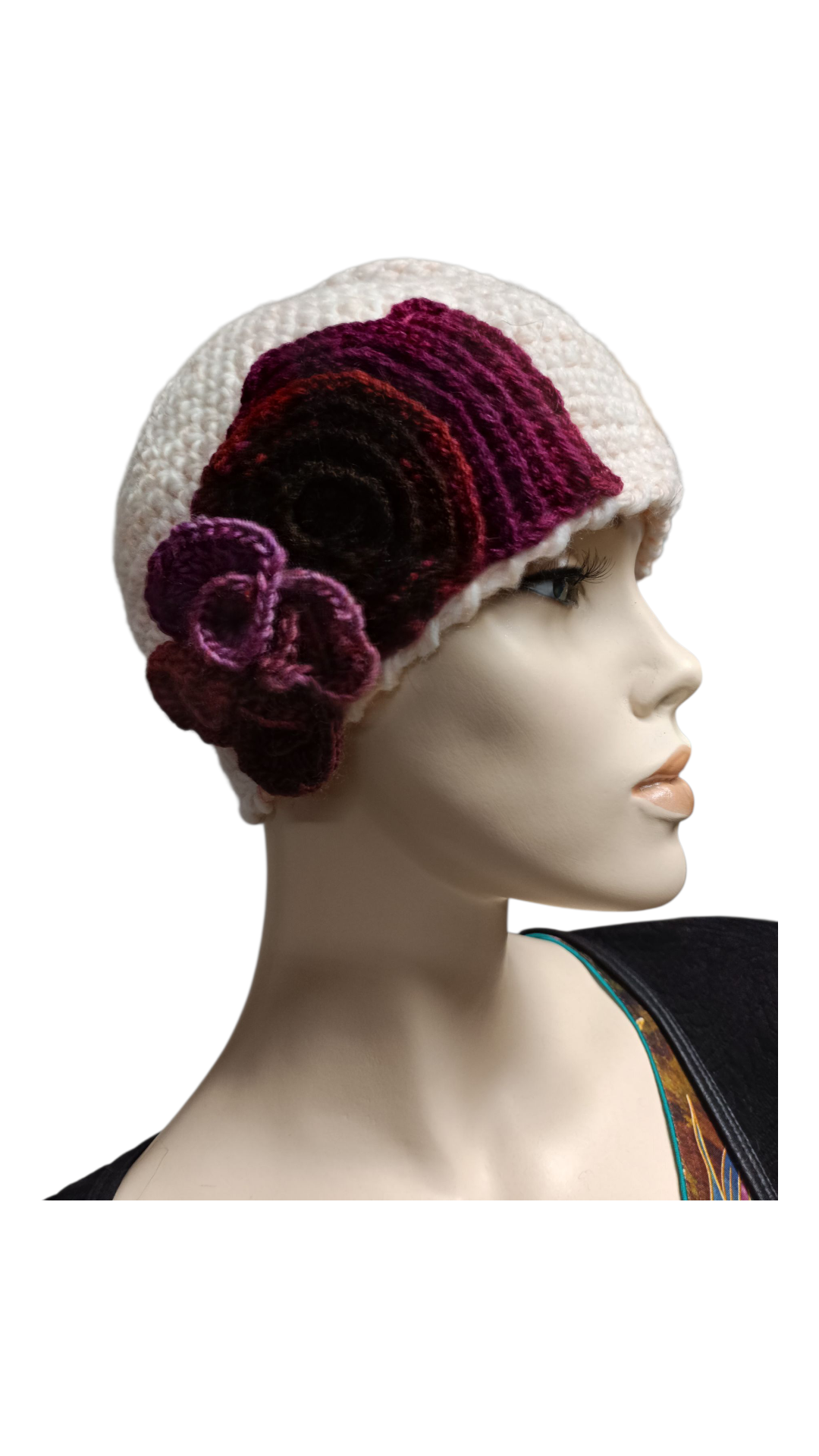 Dámská zimní čepice je uháčkována z luxusní směsové příze německého výrobce ( 60% vlna + 30% acryl 10% alpaka ).